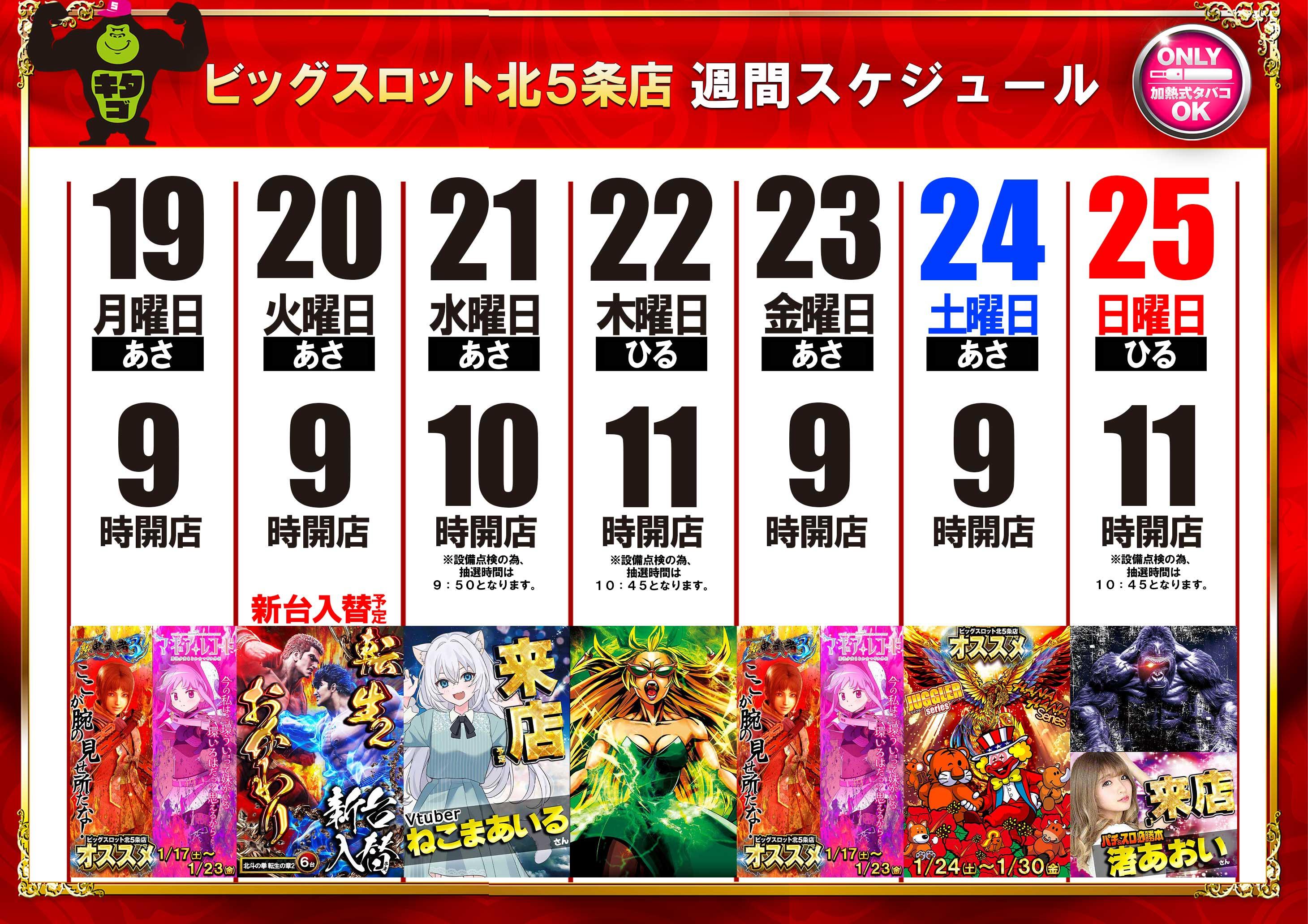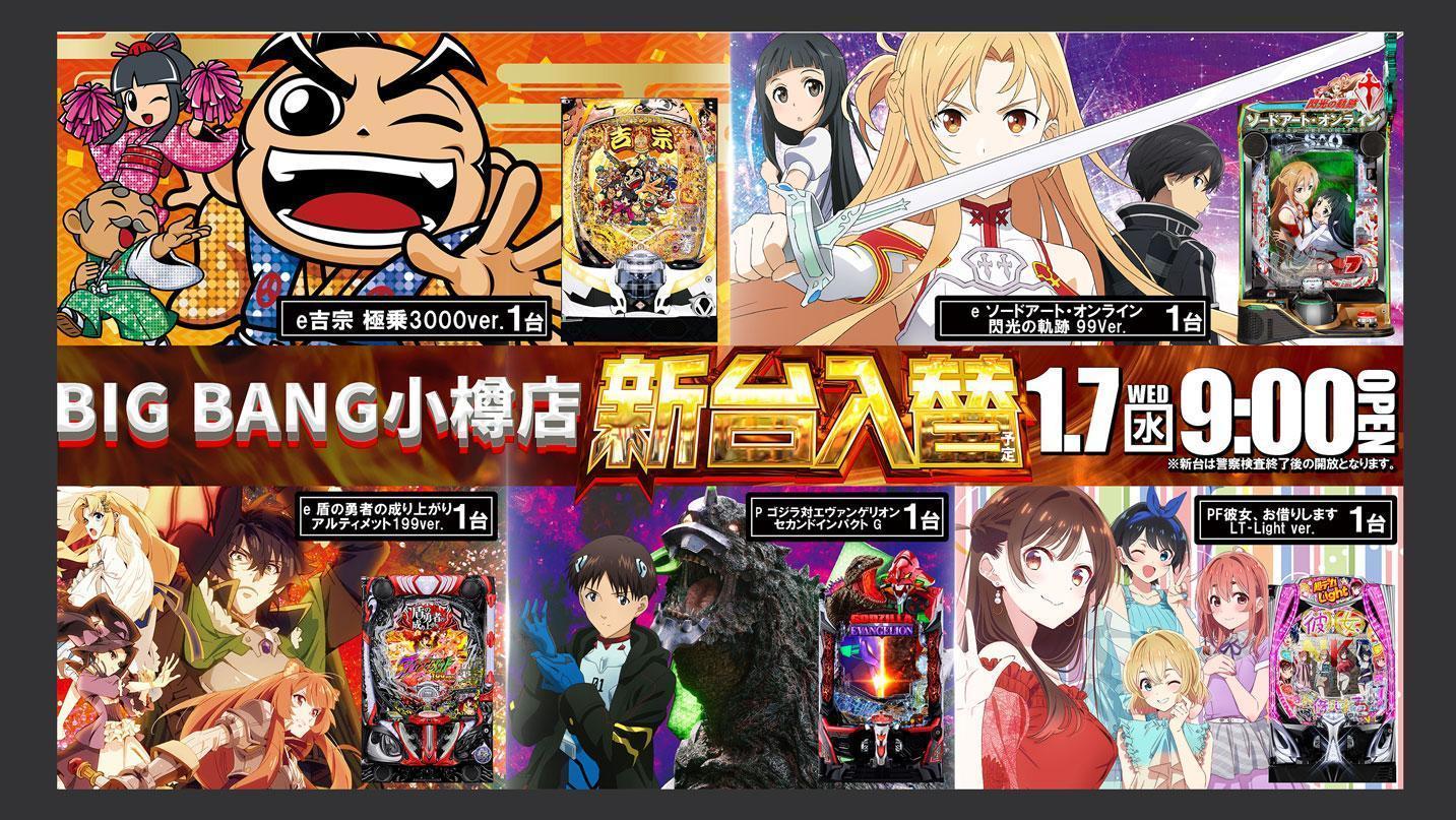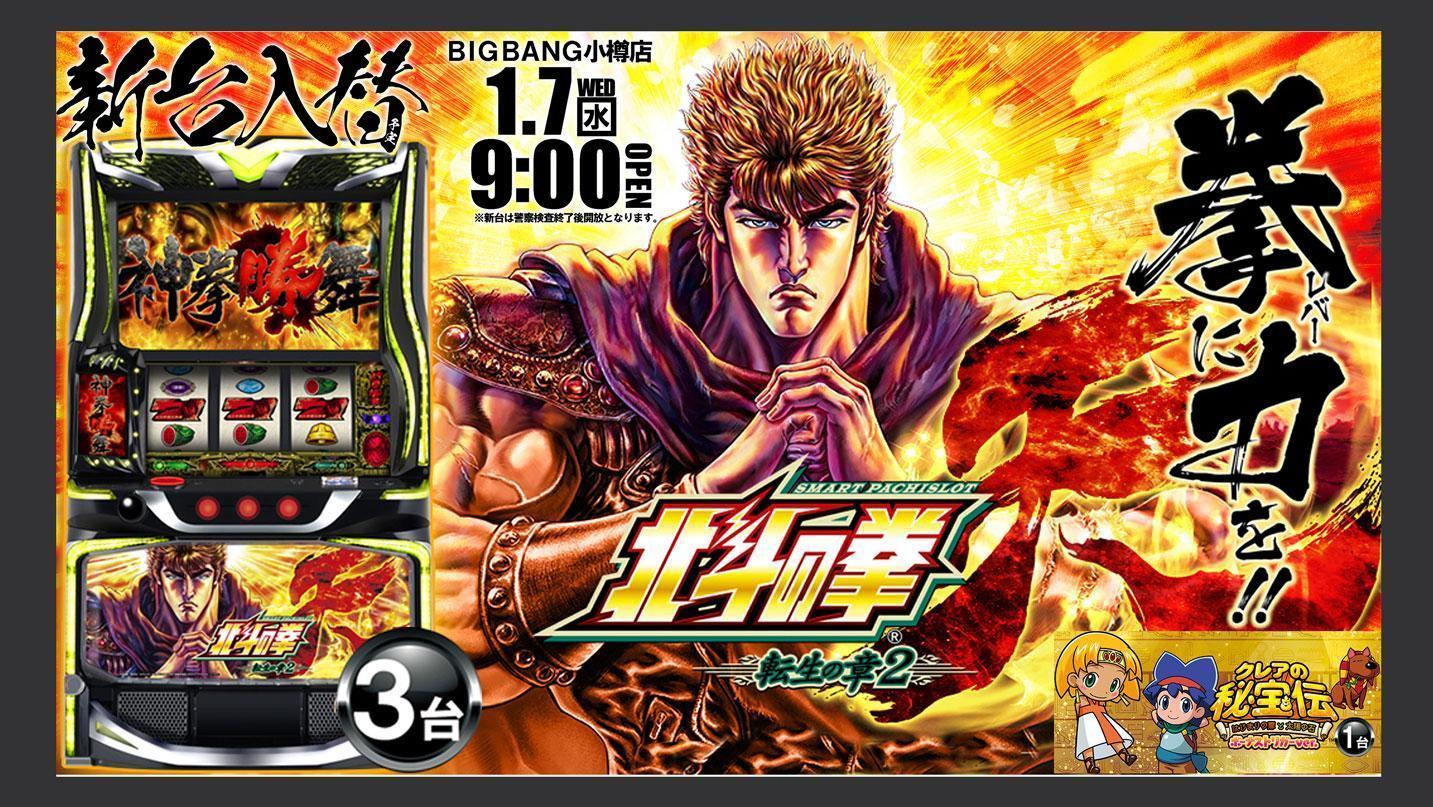 【ビッグバン小樽店】1月19日(月)あさ9時開店 スマスロ北斗シリーズ スマパチデカへそ機種オススメ